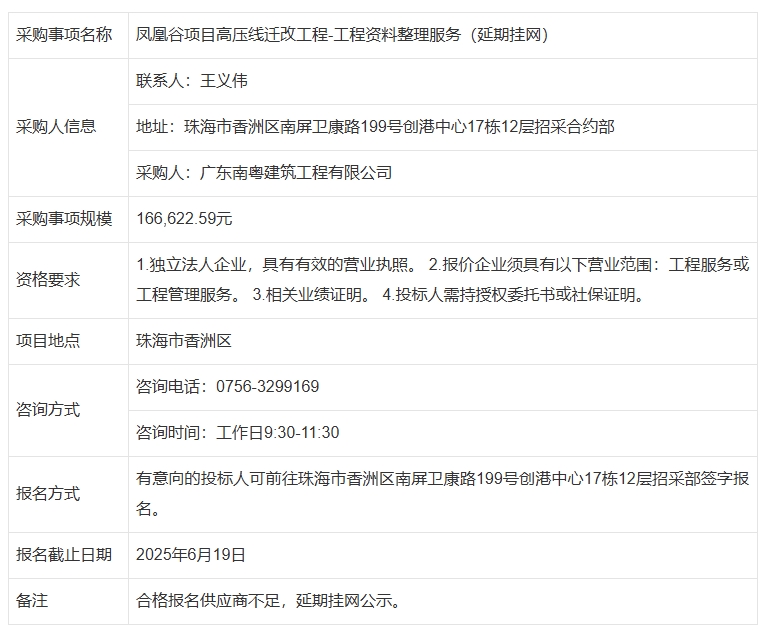 鳳凰谷項目高壓線遷改工程-工程資料整理服務(延期掛網) 專欄:工程招標 發(fā)布日期: 2025-06-16 作者:招采管理中心 附件:測試文檔 附件:測試文檔 返回列表 上一篇:南屏科技工業(yè)園第二批道路綜合改造提升工程項目-市政排水管網移交整改(屏北二路飛天利商混路段)專業(yè)分包招標 下一篇:G105國道綜合提升工程設計施工總承包項目-工程資料歸檔服務(延期掛網)