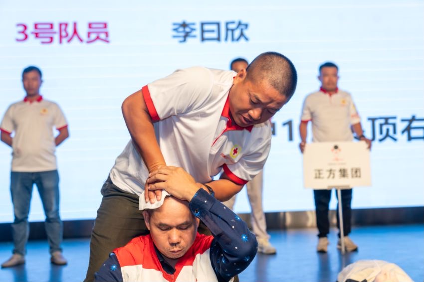 大賽以“關愛生命,救在身邊”為主題,考察紅十字救護員的急救技能,包括成人心肺復蘇、頭頂出血包扎、前臂骨折固定等。正方集團紅十字會積極組隊,與香洲區(qū)12個基層紅十字會及香洲區(qū)紅十字志愿工作者協(xié)會的60余名參賽隊員同臺競技。