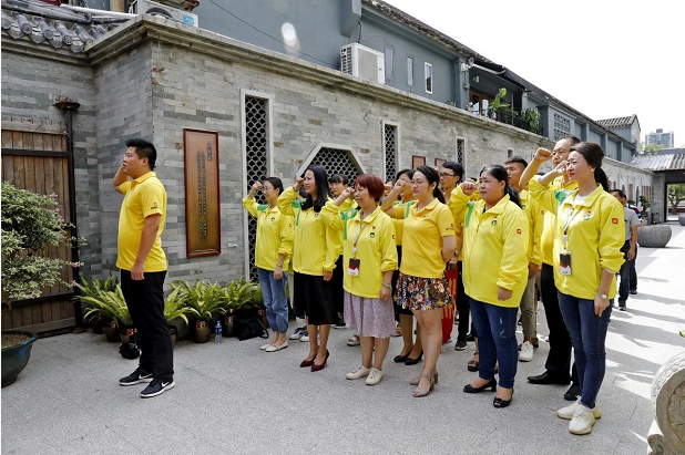 邁入楊匏安陳列館,在珠海市香洲正方控股有限公司黨委書記、總經(jīng)理唐亮同志的帶領(lǐng)下,全體黨員列隊舉起右手,面向鮮紅的黨旗重溫入黨誓詞。