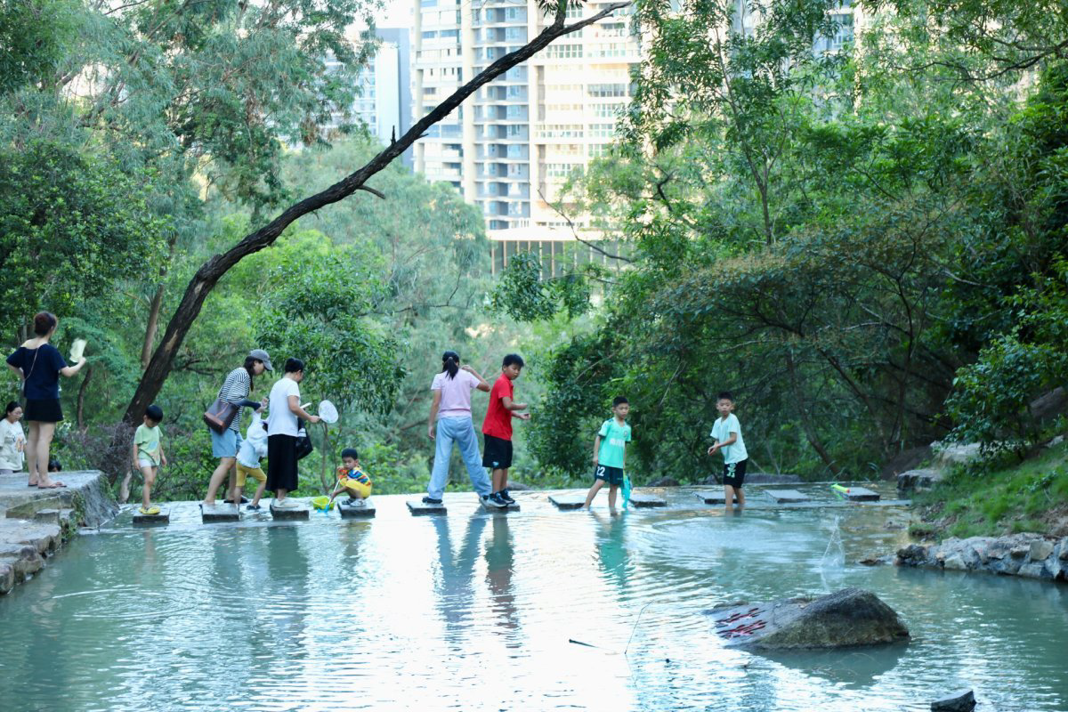 10日正值周日,公園游人熙攘。家長們紛紛帶著孩子登高望遠(yuǎn),亭臺歇腳、水邊嬉戲,盡享假日閑適?!案脑旌蟮墓珗@變得更美了。”一名來此游玩的市民笑呵呵地說道。