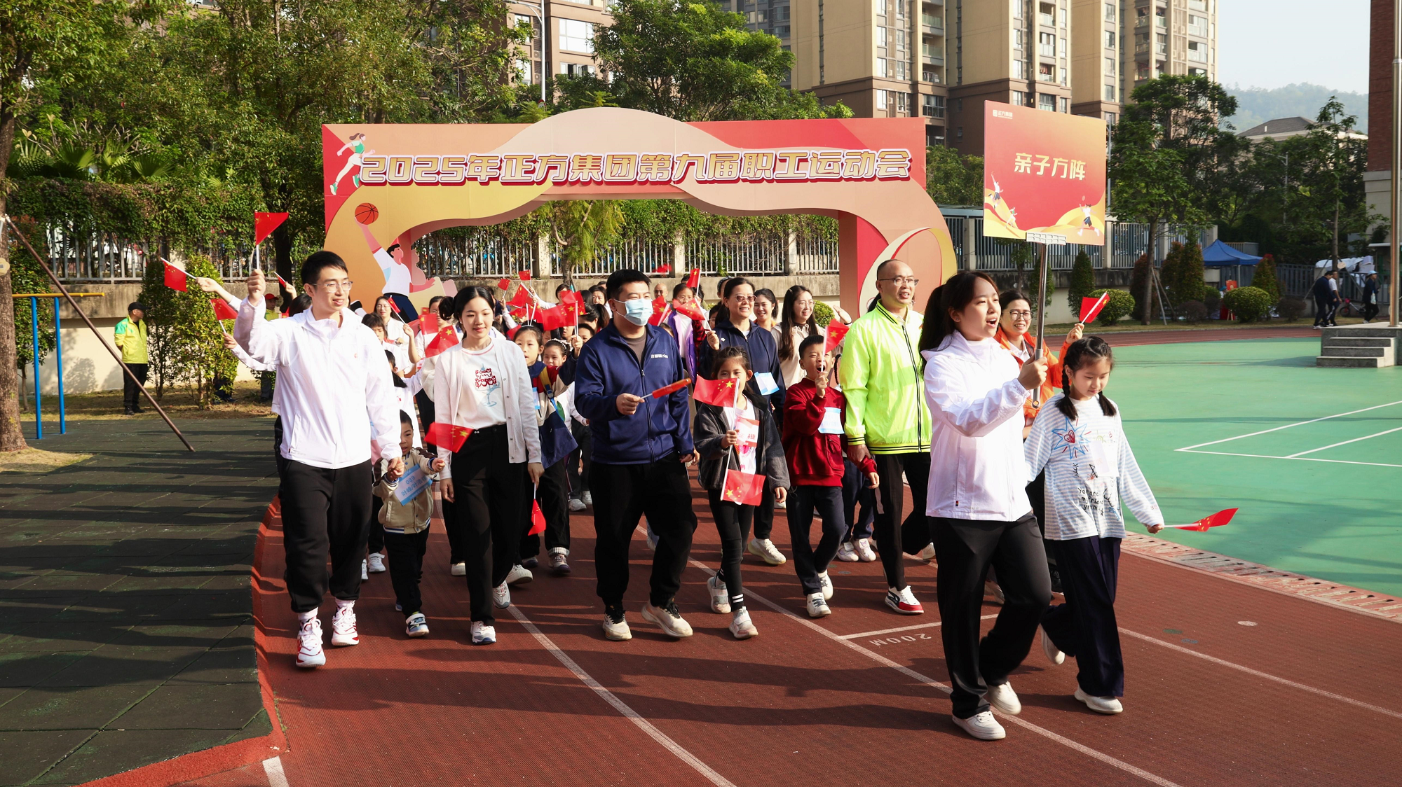 親子方陣中,職工與孩子們攜手前行,稚嫩的笑臉與活潑的身影,為賽場(chǎng)增添了濃濃的溫馨。