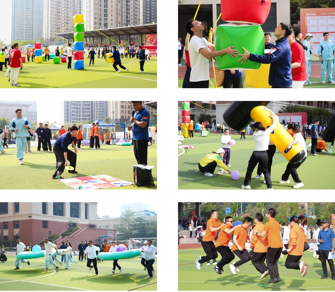 趣味賽場(chǎng)上歡笑聲不斷。跳大繩與“十拿九穩(wěn)”接力運(yùn)球節(jié)奏歡快,最考驗(yàn)團(tuán)隊(duì)默契?!按蠼疱N”砸響歡樂(lè)節(jié)拍,“井字棋接力”斗智斗勇,妙趣橫生?!澳芄で山场狈€(wěn)扎穩(wěn)打,疊起合作同贏的“高樓”。
