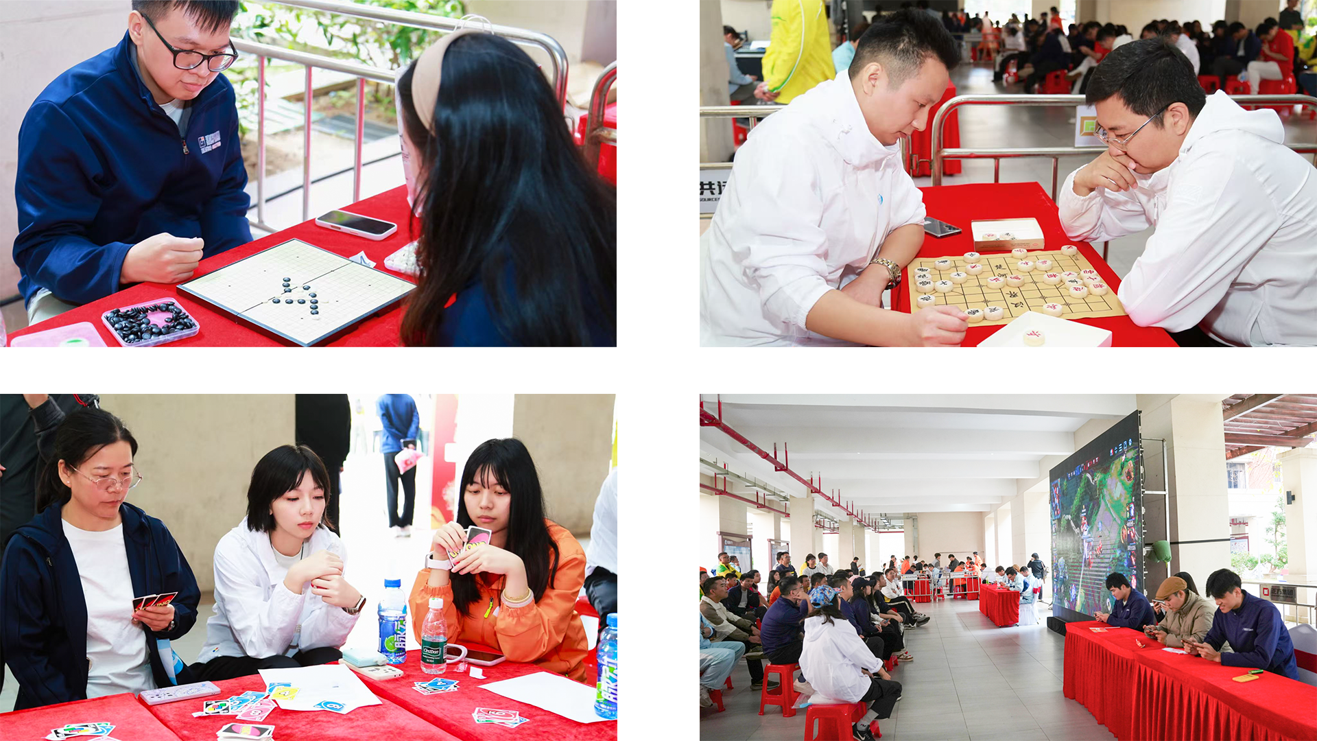 益智競(jìng)技區(qū)動(dòng)靜皆宜:五子棋、象棋選手凝神對(duì)弈,落子之間盡是籌謀;UNO牌比賽輕松歡快,策略與趣味交織;“王者榮耀”電競(jìng)區(qū)氣氛緊張而熱烈,選手們指尖飛快操作,在虛擬戰(zhàn)場(chǎng)上展現(xiàn)出默契無(wú)間的團(tuán)隊(duì)精神。