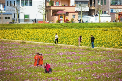 3月,斗門鎮(zhèn)小赤坎村官?zèng)_后山,10畝黃花風(fēng)鈴木已綻放, 美不勝收。漫山遍野被染上金黃。據(jù)悉,現(xiàn)場(chǎng)近期不僅有免費(fèi)道具提供給游客,還有特色服裝租賃,農(nóng)家米、甘蔗汁、自釀酒等農(nóng)產(chǎn)品展銷和小吃攤檔可供游客選擇。如果選擇斗門鎮(zhèn)小濠沖村,除了能拍攝到盛放的花簇,不妨可以來一場(chǎng)田園之旅。目前正值春耕時(shí)節(jié),田間地頭隨處可見農(nóng)戶忙碌的身影。在田園間尋找美好的景致,除了黃花風(fēng)鈴,還會(huì)有更多計(jì)劃外的“美圖”誕生,驚喜不斷。如果餓了,不妨前往附近的農(nóng)貿(mào)市場(chǎng),駐扎在此的食肆有的已經(jīng)營(yíng)業(yè)了超40年。一碗不到10元的云吞面,風(fēng)味也自有農(nóng)家特色。近幾年,斗門鎮(zhèn)小濠沖村面貌煥然一新,自駕前往,停車也不必?fù)?dān)心。