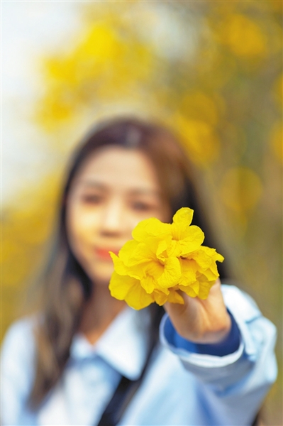 3月,珠海的黃花風(fēng)鈴木已經(jīng)掛上枝頭。這份春日贈(zèng)予的浪漫,總是一年一度如期而至,營(yíng)造出溫婉迷人的氛圍。資深的攝影師會(huì)避開正午的直射太陽(yáng)光,因?yàn)榇藭r(shí)的光從頭頂直射,容易在臉上形成陰影。想要在“氛圍感”上大做文章,女性朋友可以選擇下午接近傍晚時(shí)分拍照,此時(shí)光線比較柔和,色溫偏暖,也容易在臉上形成天然的“補(bǔ)光”效果。巧妙借助光線,和枝頭的黃花風(fēng)鈴合影,拍出的照片定能收獲更多點(diǎn)贊。