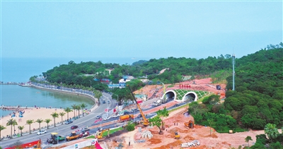 菱角咀隧道北起海濱公園,南至海濱泳場服務中心(正方優(yōu)和匯城市客廳)停車場入口,線路總長約960米,其中隧道長約340米,分為東西雙線,雙向4車道。隧道的作用在于“截彎取直”,提升情侶中路菱角咀段的行車效率,分流周邊路網(wǎng)的交通壓力。通車后,隧道由北往南行車出隧道口就是愛情郵局、燈塔,由南往北就是香爐灣沙灘。一座隧道達到“串珠成線”的效果,把周邊的海濱公園、城市陽臺、香爐灣沙灘、海濱泳場、愛情郵局等濱海景觀串聯(lián)起來。
