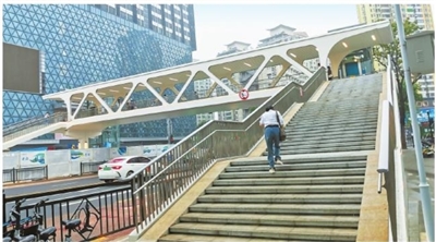 揚(yáng)名廣場前方的天橋已臨時(shí)開放通行。 珠海特區(qū)報(bào)記者 李建束 攝