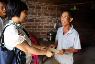 扶貧小組成員為各自的幫扶對象送上慰問品與慰問金