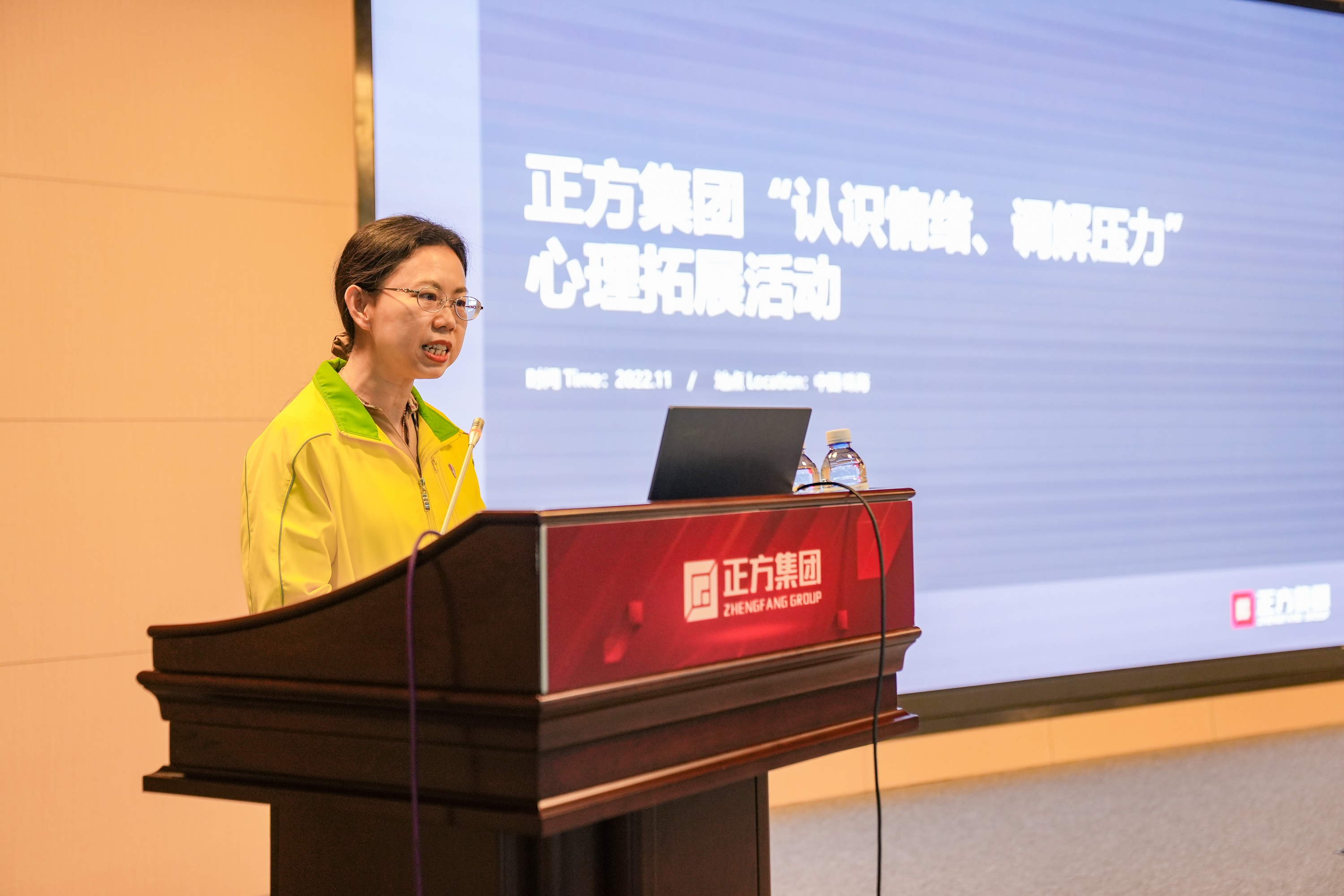 活動正式開始前,正方集團(tuán)黨委委員、總經(jīng)理助理黃少蘭同志發(fā)表致辭,希望大家能夠從容的面對壓力和情緒,找到科學(xué)有效的調(diào)解方法,正確認(rèn)識關(guān)注心理問題,提高心理健康的意識,從而健康快樂的工作生活