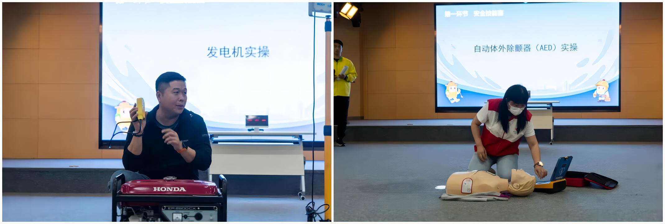 競(jìng)賽活動(dòng)設(shè)置了自動(dòng)體外除顫器(AED)使用和發(fā)電機(jī)啟動(dòng)的安全技能實(shí)操,AED使用展示等環(huán)節(jié)。珠海市紅十字會(huì)救護(hù)培訓(xùn)老師鄭玲玲對(duì)隊(duì)員的實(shí)操表現(xiàn)給予了充分肯定,并在現(xiàn)場(chǎng)示范了規(guī)范的操作流程;應(yīng)急倉(cāng)庫(kù)管理員梁亞詳細(xì)講解了發(fā)電機(jī)啟動(dòng)的操作要求,有效提高了隊(duì)員的實(shí)操水平。